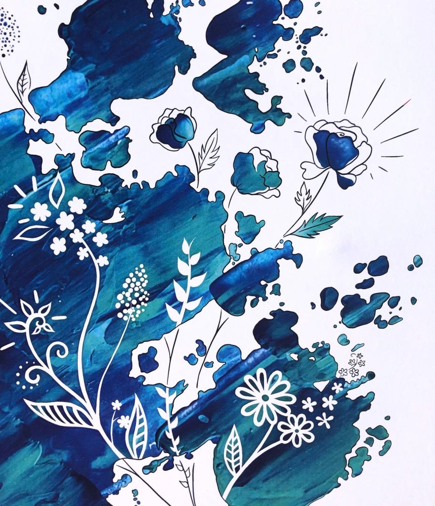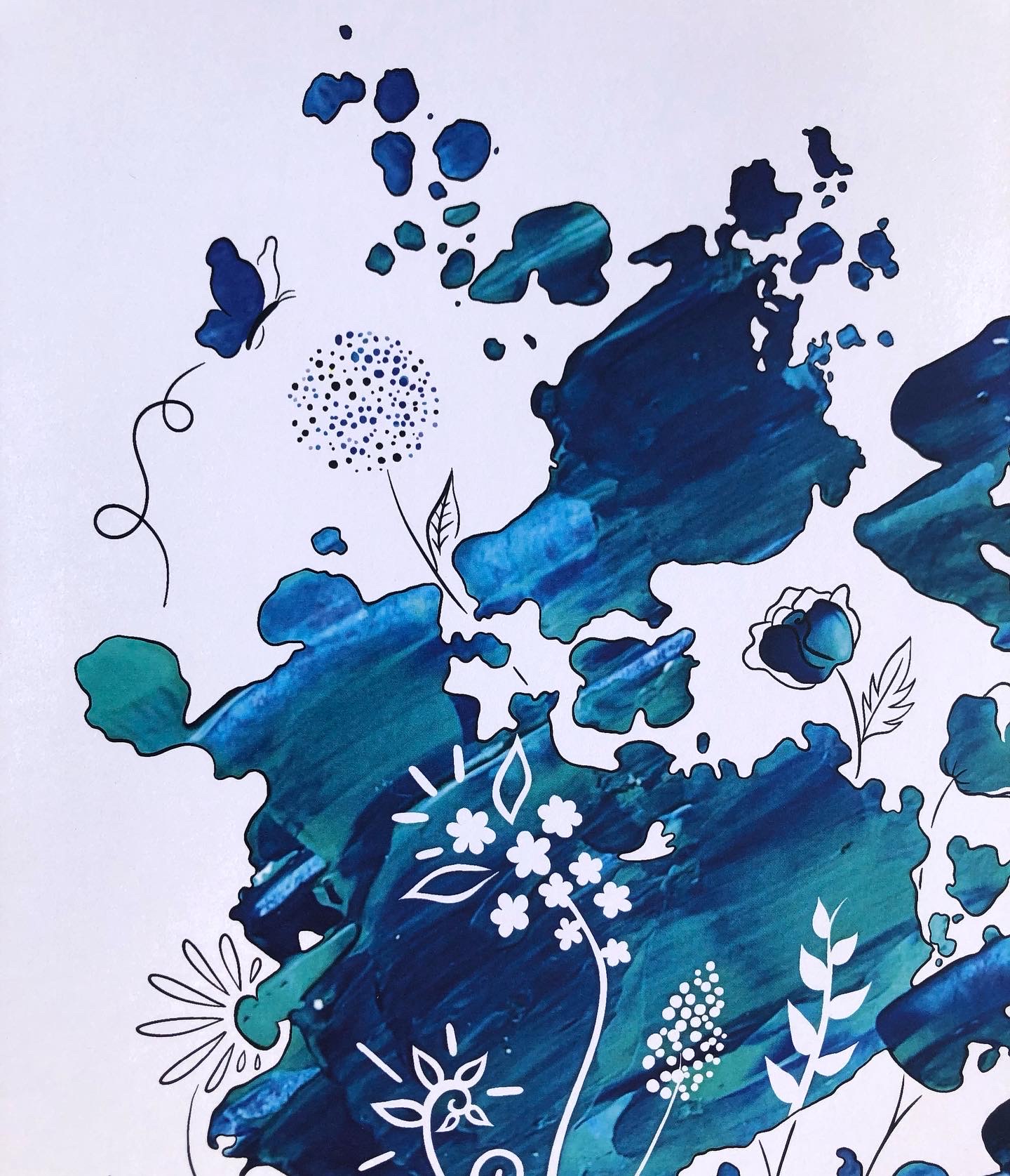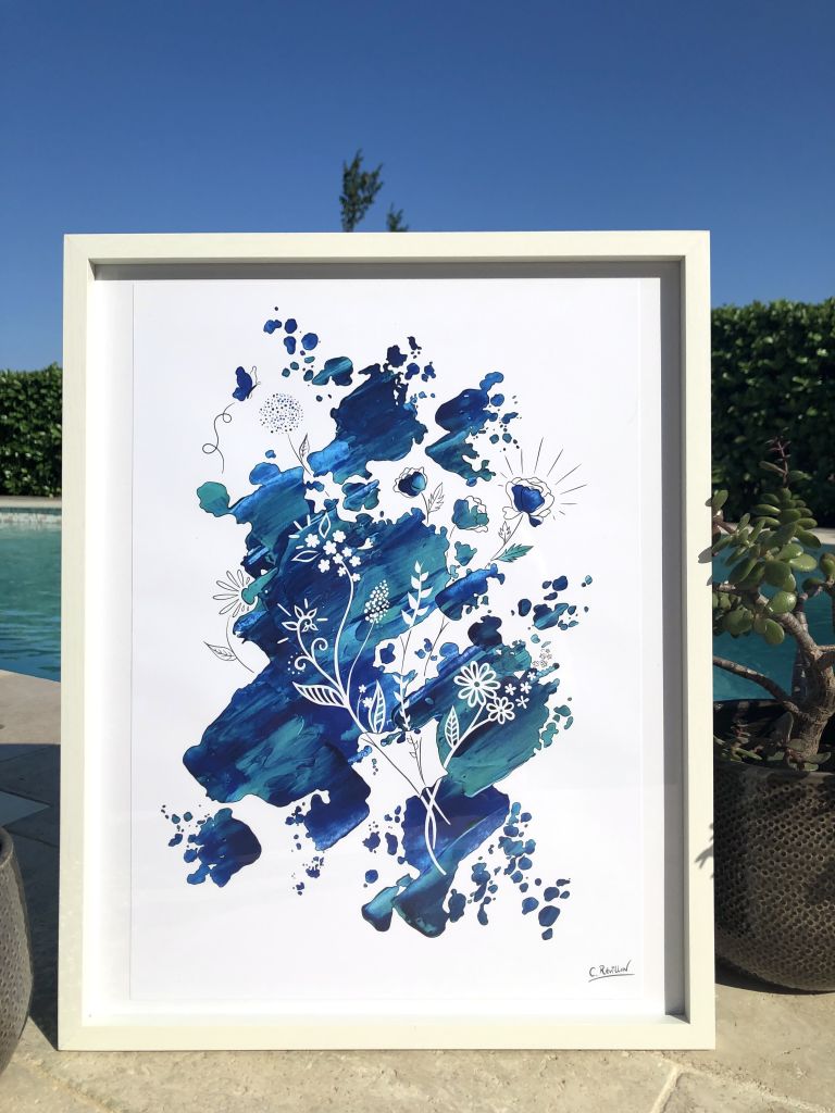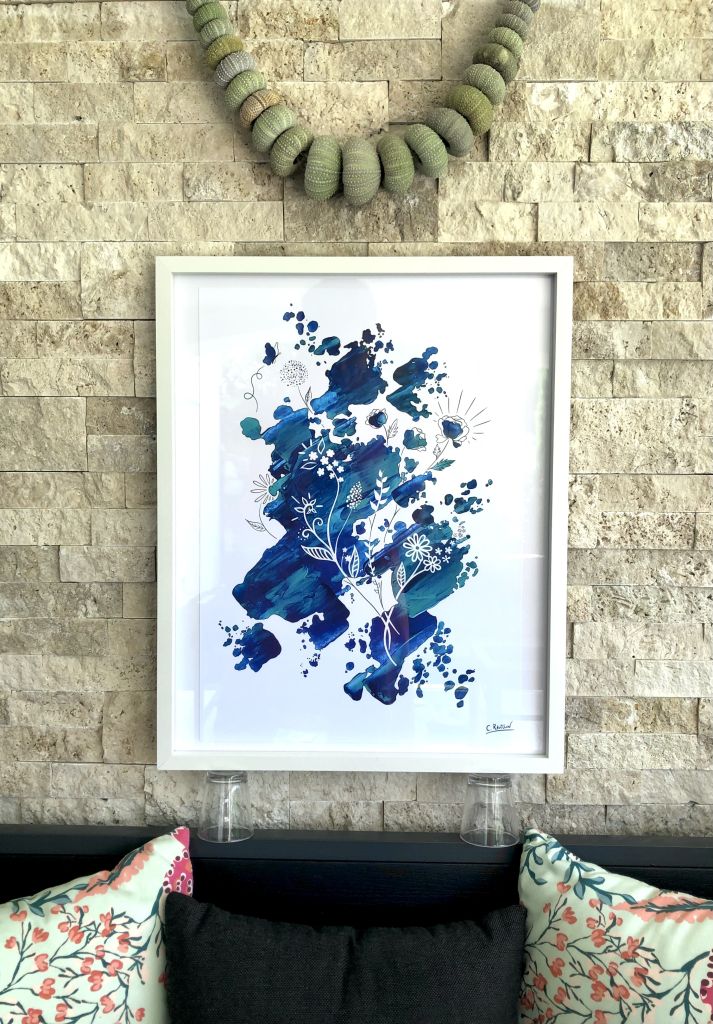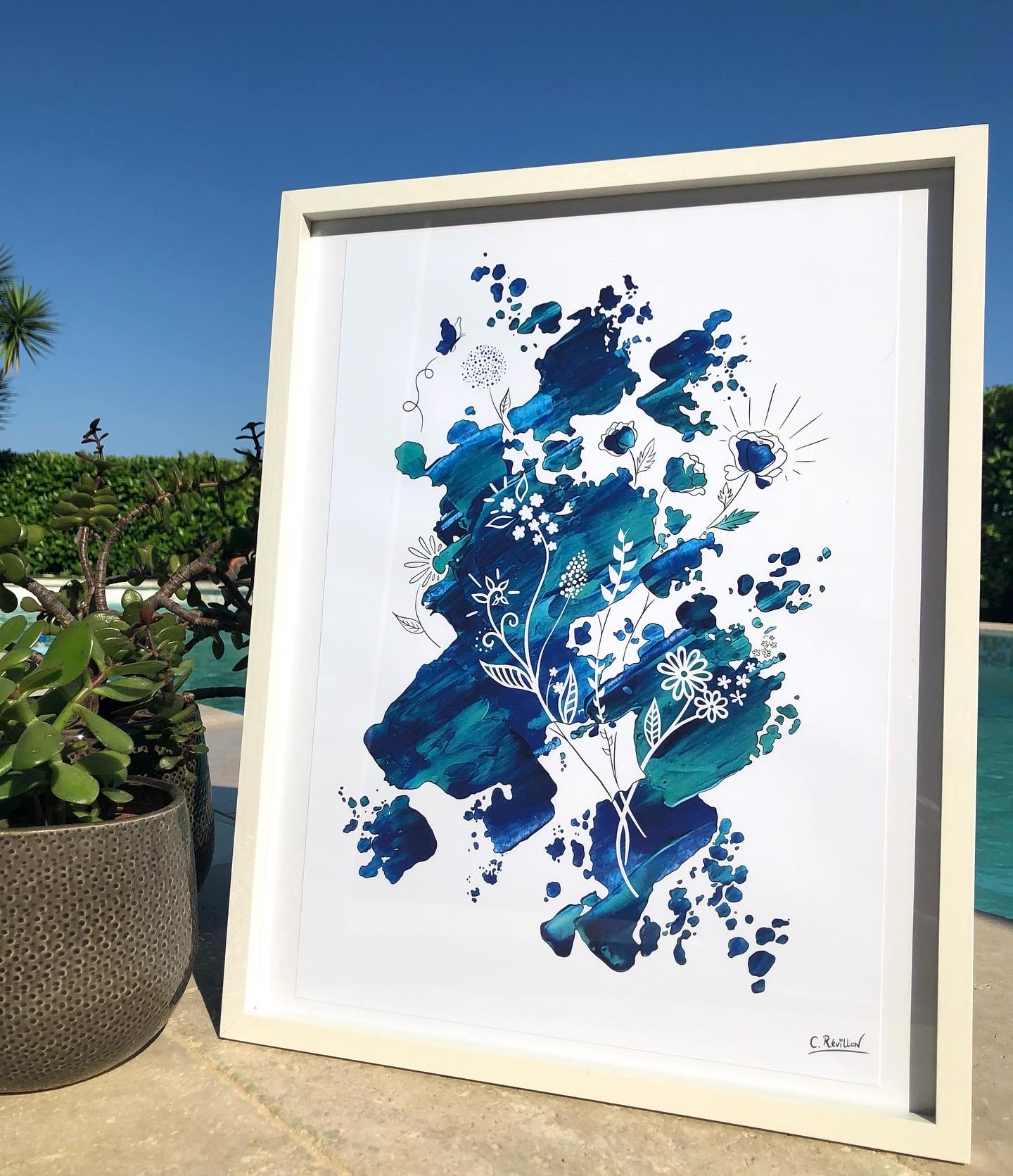 Une affiche décorative colorée et rafraîchissante, résultant de la rencontre entre peinture acrylique pour le fond et la couleur, et dessin numérique pour les détails et la finesse !
