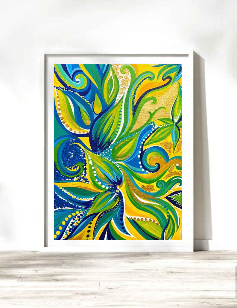tableaux et de peintures sur canson abstraits, tout en courbes, fluidité, et couleurs vives !