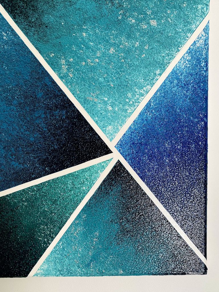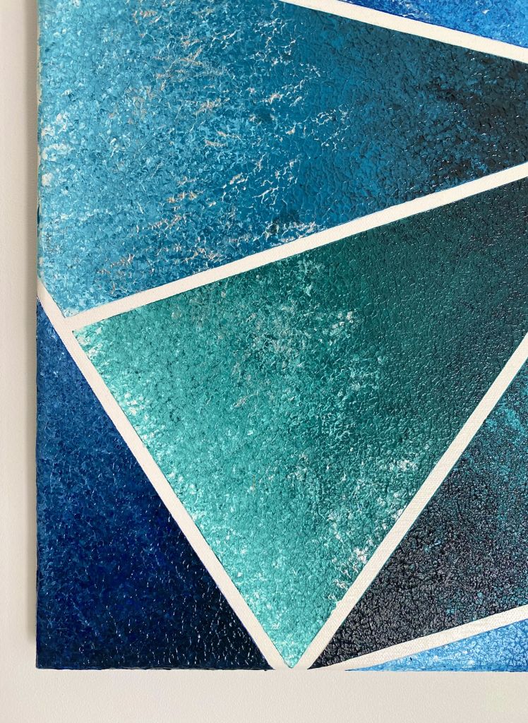 J’aime voir dans chaque triangle une zone d’eau, glacée en surface, dans laquelle on peut encore voir le relief et l’écume laissés par les vagues… comme figés par le temps et les éléments.