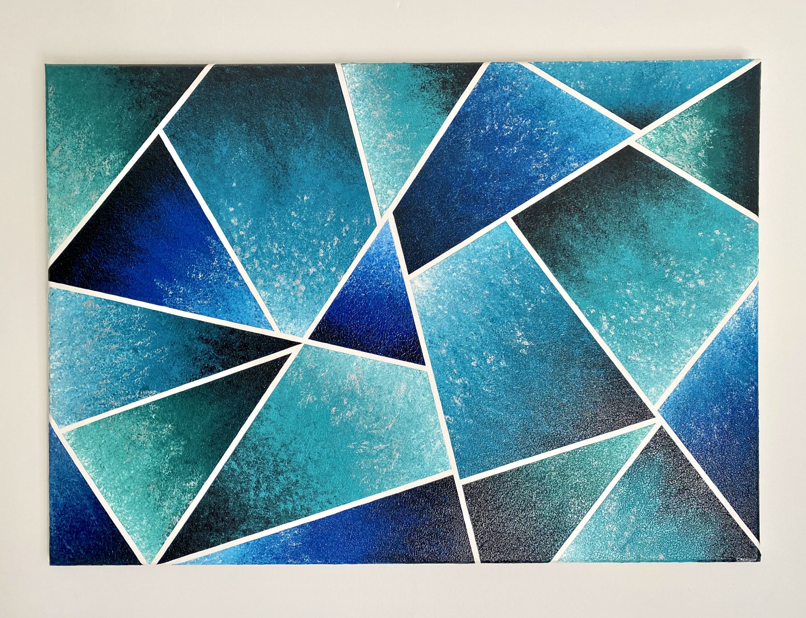 J’aime voir dans chaque triangle une zone d’eau, glacée en surface, dans laquelle on peut encore voir le relief et l’écume laissés par les vagues… comme figés par le temps et les éléments.